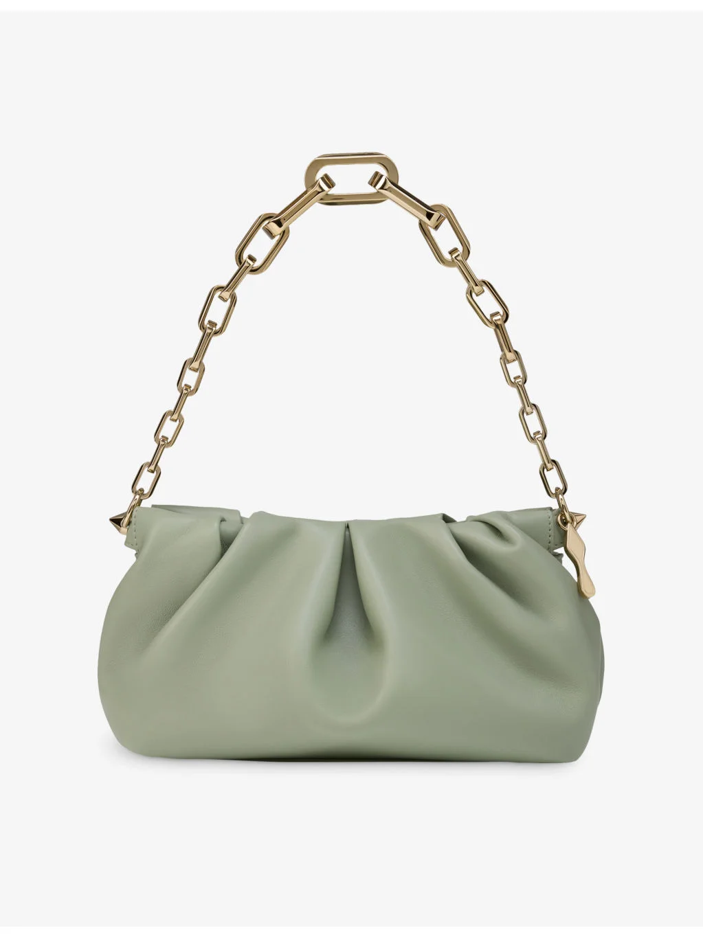 PRODUCT DETAILS - Christian Louboutin leather shoulder bag - 100% Lambskin leather - Magnetic fastening - Ruched design, chain strap, main compartment, internal zipped pocket - Height 14cm, length 25cm, width 10cm - Made in Italy - Specialist leather clean - Regrettably we are unable to accept in-store returns on Christian Louboutin orders Ref: R04556399