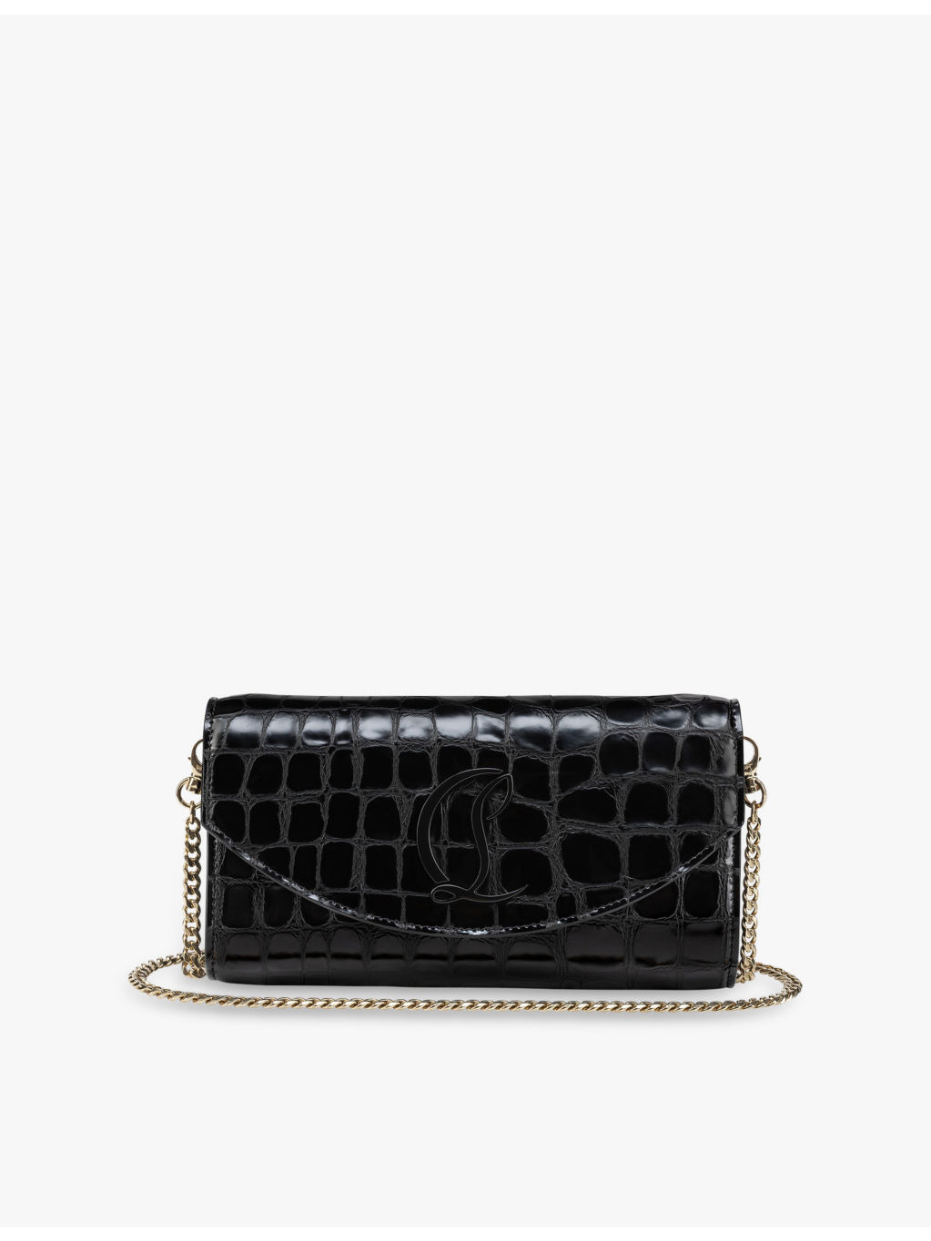 PRODUCT DETAILS - Christian Louboutin leather wallet-on-chain - 100% leather - Button, hook-and-eye and zip-fly fastening - Detachable strap, flap-over opening, logo plaque, branded buckle, 3 internal card slots, one internal compartment, signature red lining, croc embossment - Height 12cm, width 22cm, depth 5.5cm - Specialist leather clean - Made in Italy Ref: R04323746