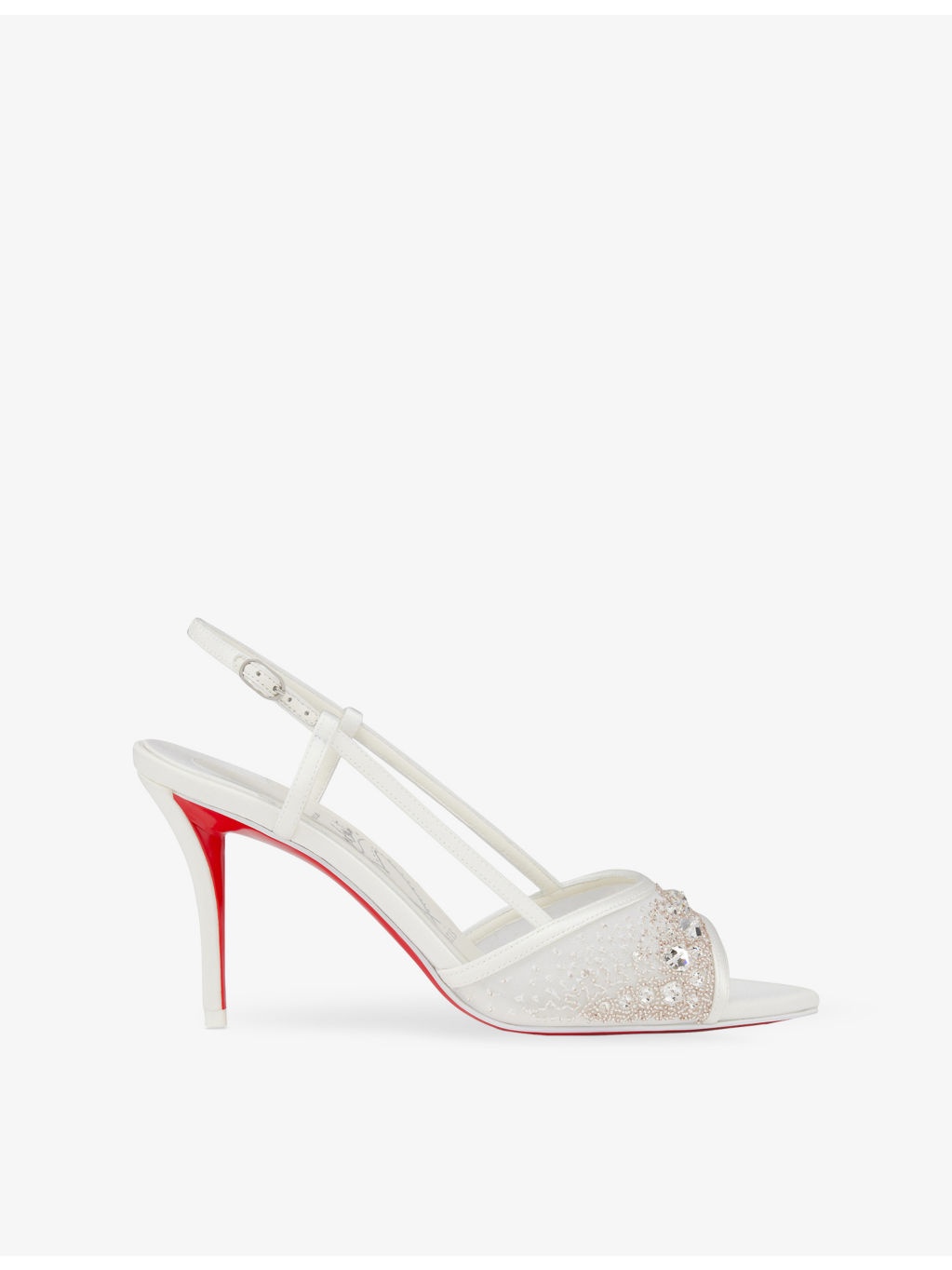 PRODUCT DETAILS - 60% silk, 40% polyamide - Heel height 80mm / 3.14in - Made in Italy - This style runs large, we suggest you take a half size down for a more appropriate fit - This model features an Everlasting Red Sole, ensuring resistance and lasting vibrancy of the signature Louboutin red. - Christian Louboutin strongly recommends that its customers consult a professional in leather care or a shoemaker for specific care advice. In order to keep your shoes in good condition, the following leather care is recommended: - Keep the leather area clean and dry using a dry, soft cloth - Always store your products away from light and heat - Protect your leather goods from rain and moisture - Store your products in the Christian Louboutin dust bag provided - Avoid contact with abrasive surfaces - Regrettably we are unable to accept in-store returns on Christian Louboutin orders - PLEASE NOTE: Due to the delicate nature of the red soles we ask that the shoes be tried on carpeted flooring. If not, they may not be suitable for return Ref: R04430986