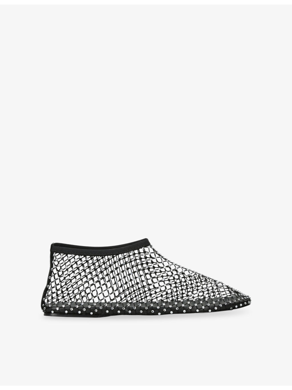 PRODUCT DETAILS - Christopher Esber mesh ballet flats - 93% polyester, 7% elastane - Closed square toe, mesh netting upper, all-over hand-applied glass crystal embellishments, sock-like silhouette, elasticated ankle opening - Wipe with a clean, dry cloth - Made in Italy - Upper: 93% polyester, 7% elastane - Lining: unlined - Sole: 100% leather Ref: R04478387