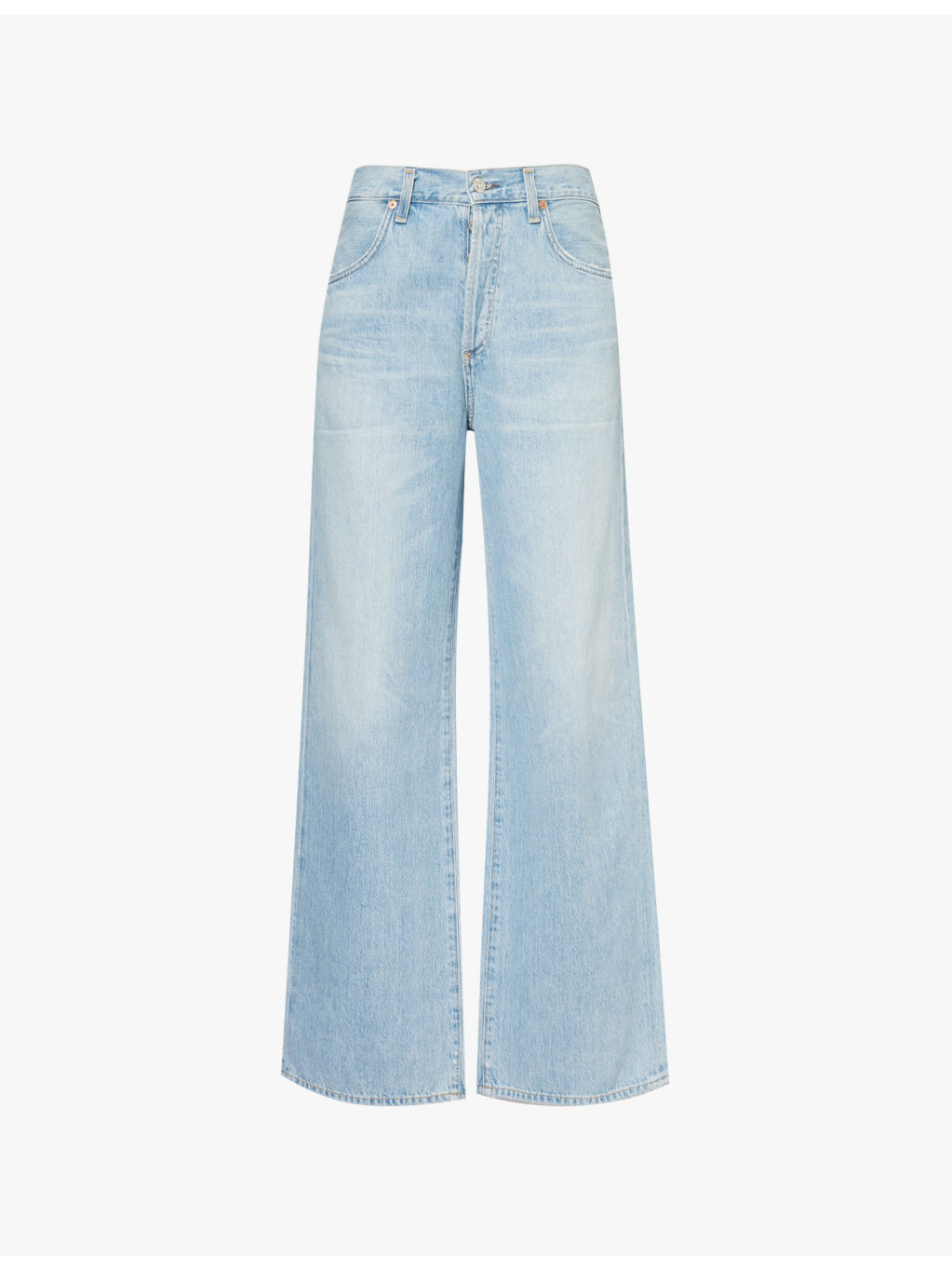 PRODUCT DETAILS - Citizens of Humanity denim jeans - 100% cotton - Exposed button and concealed button-fly fastening - Mid rise, wide leg, belt loops, five pockets, branded patch at back, all-over faded wash - Machine wash cold - True to size - Size UK 26: rise 11.5in / 29.5cm, inside leg 30in / 76.2cm, leg opening 20in / 51.5cm - Model is 5ft 10in / 1.78m and wears a size UK 26 Ref: R04357370
