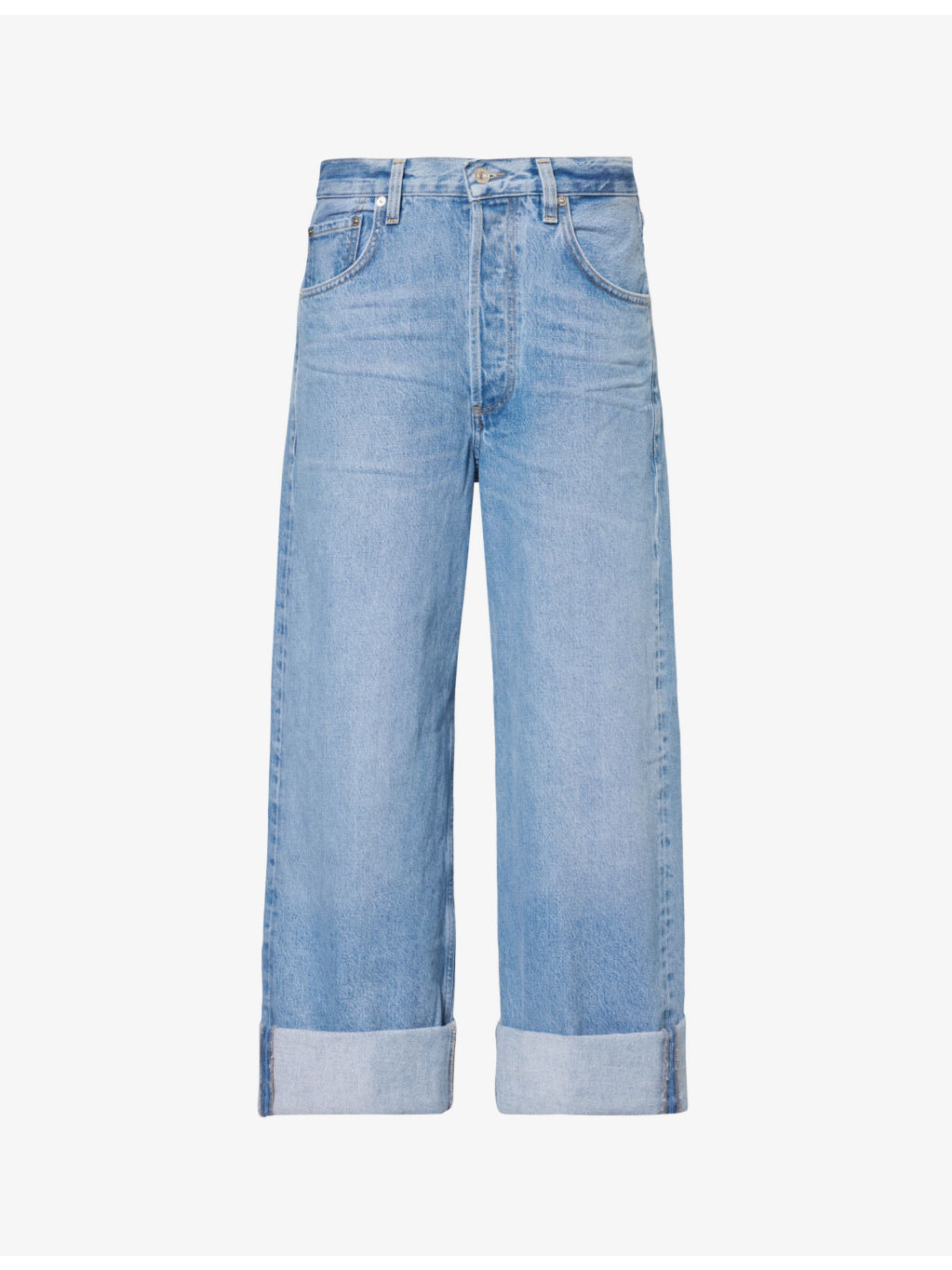 PRODUCT DETAILS - Citizens of Humanity denim jeans - 100% cotton - Button and zip-fly fastening at front - Relaxed fit, high rise, wide leg, belt loops, five pockets, branded patch at back, faded wash, folded hems, partially lined - Machine wash cold - True to size - Size 27: rise 12in / 31cm, inside leg 25in / 64cm, leg opening 20in / 51cm - Model is 5ft 11in/1.80m and wears a size 27 - Midweight, non-stretch