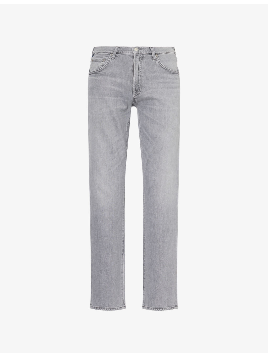 PRODUCT DETAILS - Citizens of Humanity stretch-denim jeans - 98% cotton, 2% elastane - Exposed button and concealed zip-fly fastening at front - Regular fit, low-rise, straight leg, belt loops, five pockets, brand patch at back, faded wash and whiskering - Machine wash cold - Made in USA - Size UK 30: rise 11in / 28cm, inside leg 32in / 82cm, leg opening 14in / 36cm - Model is 6ft 2in/1.88m and wears a size UK 30 - Midweight, stretchy Ref: R04460518