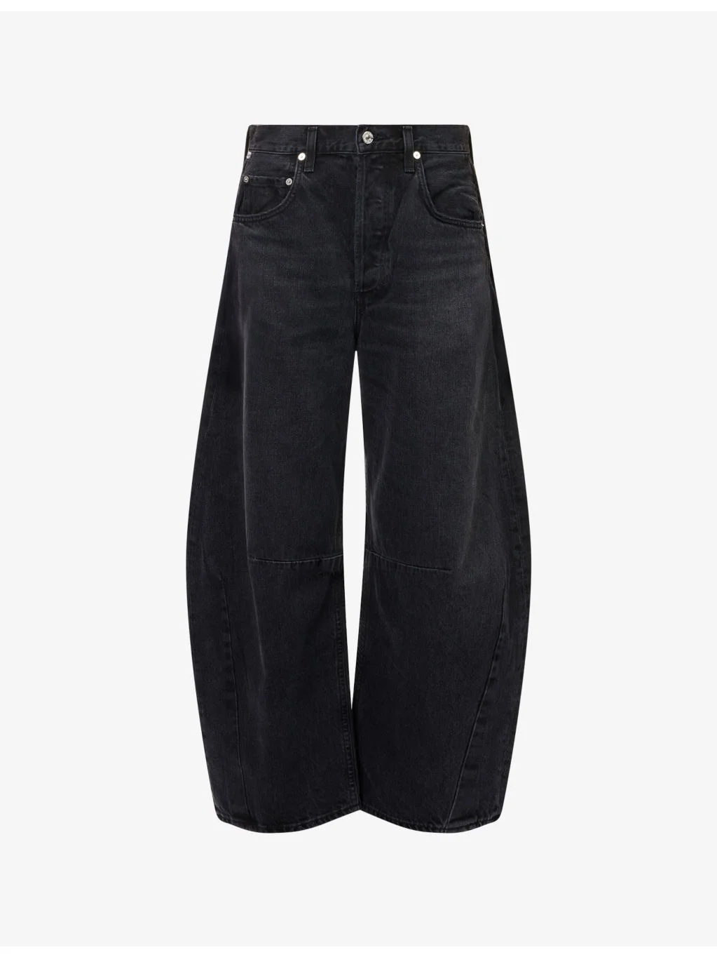 PRODUCT DETAILS - Citizens of Humanity denim jeans - 100% cotton - Exposed button and concealed button-fly fastening at front - Relaxed fit, high-rise, barrel leg, belt loops, five pockets, brand patch at back, faded wash - Machine wash at 30°C - Made in USA - True to size - Size 26: rise 13in / 33cm, inside leg 26in / 67cm, leg opening 18in / 46cm - Model is 5ft 10in/1.78m and wears a size 26 - Midweight, slight stretch Ref: R04523278