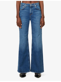 PRODUCT DETAILS - Citizens of Humanity stretch-denim jeans - 99% cotton, 1% elastane - Exposed button and concealed zip-fly fastening at front - Relaxed fit, high-rise, wide leg, belt loops, five pockets, faded wash and whiskering, flared cuffs - Machine wash cold - Made in Turkey - True to size - Size 26: rise 11in / 29cm, inside leg 31in / 80cm, leg opening 22in / 56cm - Model is 5ft 10in/1.78m and wears a size 26 - Midweight, stretchy Ref: R04541270