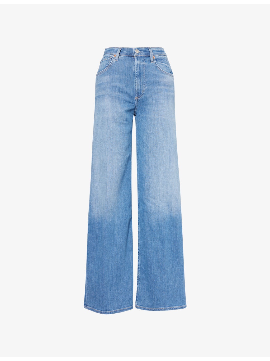 PRODUCT DETAILS - Citizens of Humanity denim jeans - 93% cotton, 6% polyester, 1% elastane - Exposed button and concealed zip-fly fastening at front - Regular fit, high-rise, wide leg, structured waistband with belt loops, five pockets, branded hardware, faded-effect and whiskering, brand patch at back - Machine wash cold - Made in Turkey - True to size - Size 26: rise 11in / 28cm, inside leg 32in / 81.5cm, leg opening 22in / 56cm - Model is 5ft 10in/1.78m and wears a size 26 - Lightweight, slight stretch Ref: R04475252