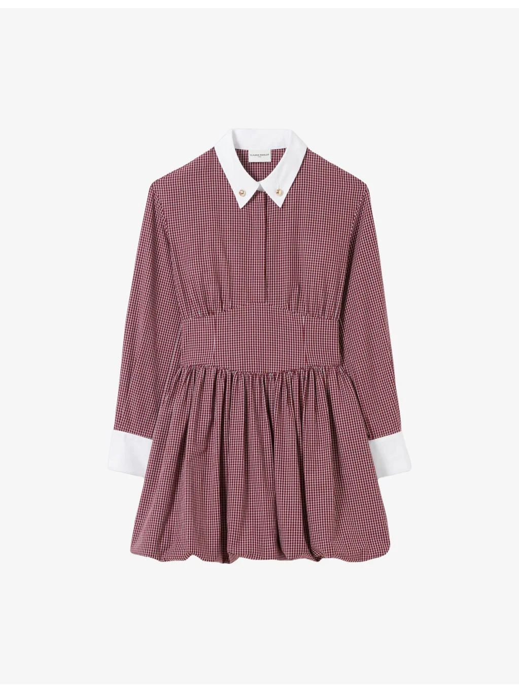 PRODUCT DETAILS - Claudie Pierlot cotton-poplin mini dress - 100% cotton - Concealed button fastenings at front and concealed zip fastening at side - Regular fit, contrast button-down collar, gold-toned buttons, long sleeves, contrast cuffs, all-over checked pattern, fitted waist, bubble hem, mini length - Machine wash at 30°C - True to size - Lightweight, non-stretch Ref: R04495974