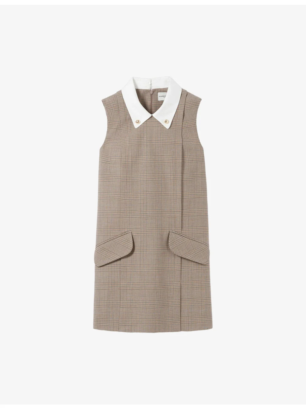 PRODUCT DETAILS - Claudie Pierlot wool-blend mini dress - 55% wool, 41% polyester, 4% elastane - Zip fastening - Regular fit, contrast collar, sleeveless, side pockets, all-over checked pattern - Dry clean - True to size - Model is 5ft 10in/1.78m and wears a size UK 8 - Lightweight, slight stretch Ref: R04495976