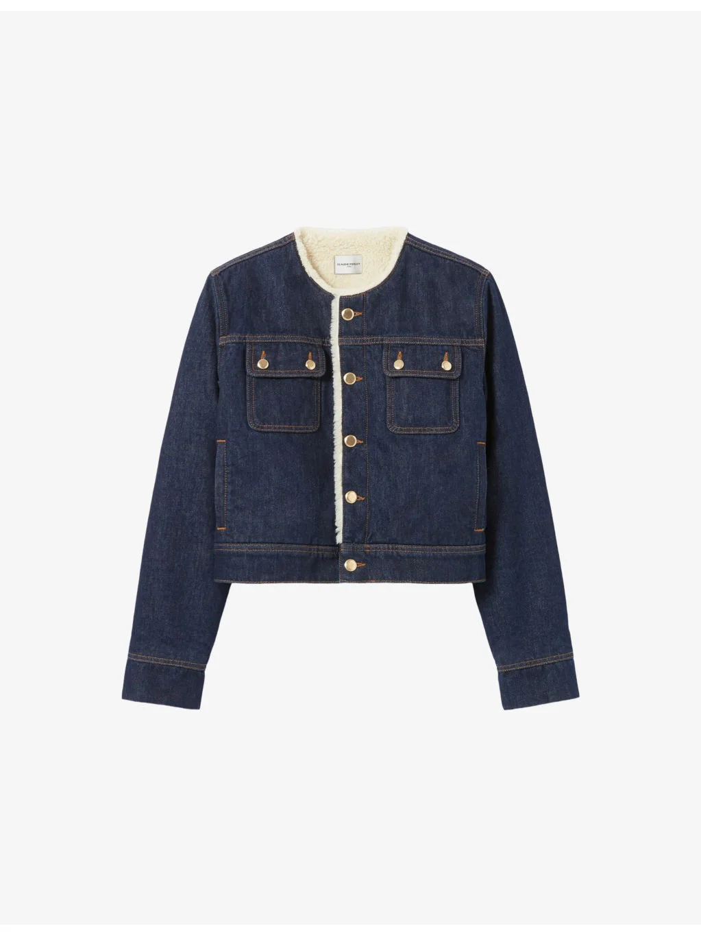 PRODUCT DETAILS - Claudie Pierlot denim jacket - 100% cotton - Button fastening - Regular fit, round-neck, long sleeves, chest pockets, faux-fur lining - Machine wash at 30°C - True to size - Model is 5ft 10in/1.78m and wears a size UK 8 - Midweight, non-stretch Ref: R04508860