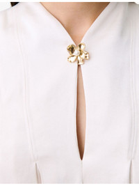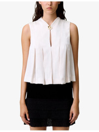 PRODUCT DETAILS - Claudie Pierlot woven top - 100% polyester - Concealed fastening - Relaxed flowy silhouette, V neck with gold-tone flower closure, sleeveless - Hand wash - True to size - Model is 5ft 9in/1.75m and wears a size UK 8 - Midweight, non-stretch Ref: R04532174