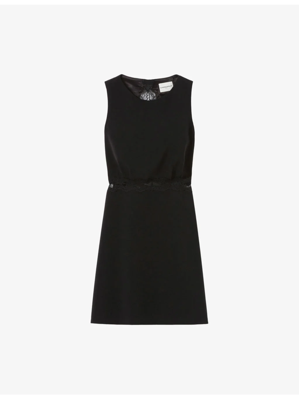 PRODUCT DETAILS - Claudie Pierlot stretch-woven mini dress - 91% polyester, 9% elastane - Zip fastening - Regular fit, round-neck, sleeveless, cut-out back, lace trim - Dry clean - True to size - Lightweight, slight stretch Ref: R04508821