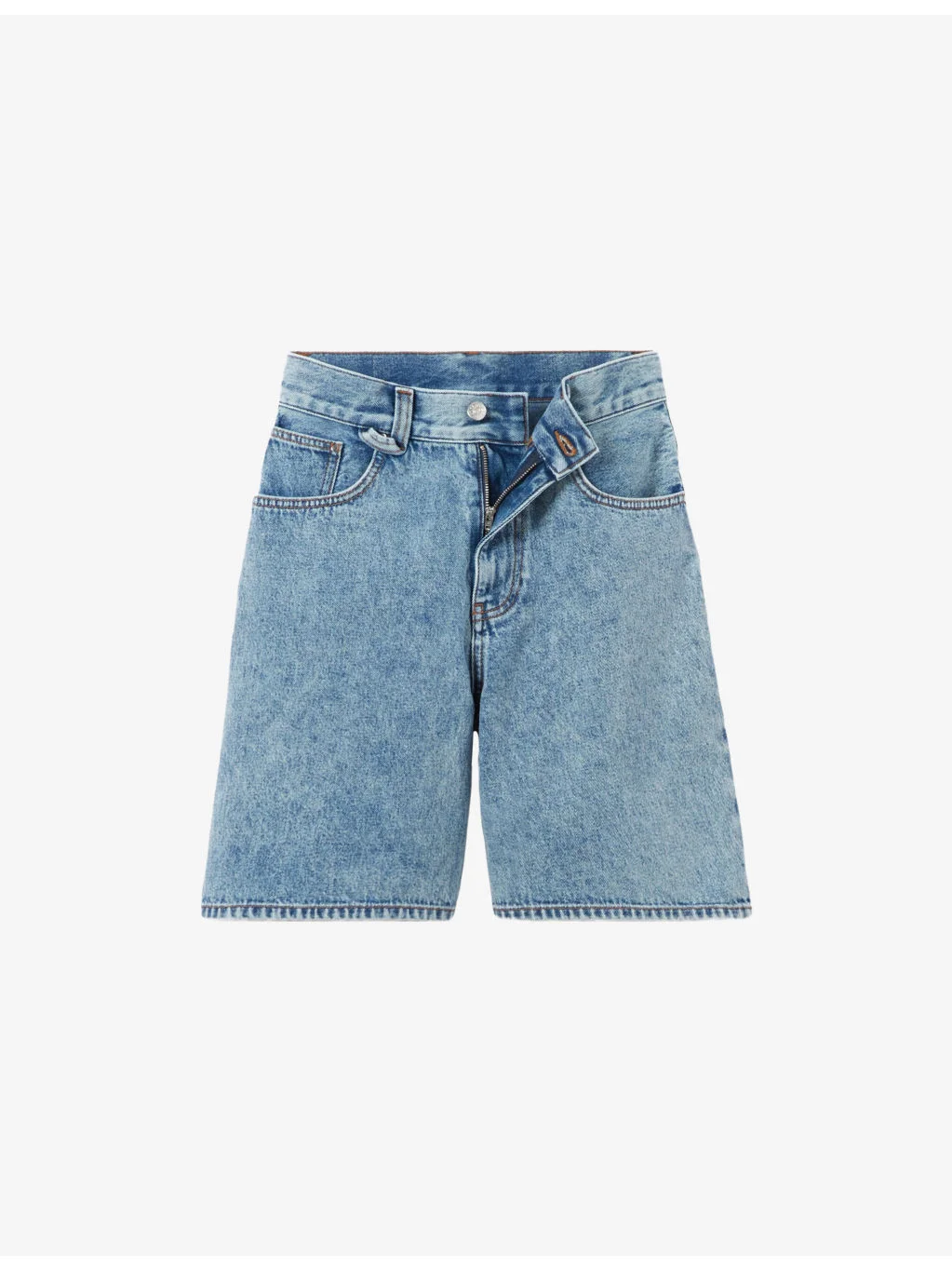 PRODUCT DETAILS - Claudie Pierlot denim shorts - 100% cotton - Button and zip-fly fastening - Regular fit, mid-rise, straight leg, belt loops, side pockets, back pockets, faded wash - Machine wash mild - True to size - Midweight, non-stretch Ref: R04598212