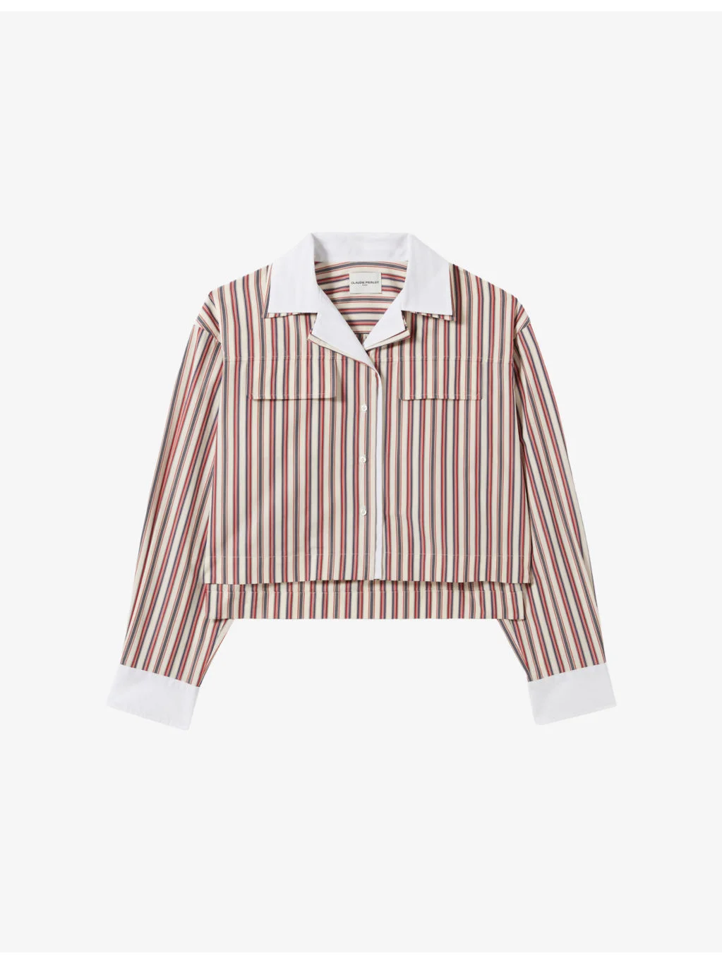 PRODUCT DETAILS - Claudie Pierlot cotton shirt - 100% cotton - Exposed button fastening at front - Relaxed fit, contrast collar, long sleeves, two pockets at the chest, stripe pattern, cropped - Machine wash at 30°C - True to size - Model is 5ft 9in/1.75m and wears a size UK 8 - Lightweight, non-stretch Ref: R04520004
