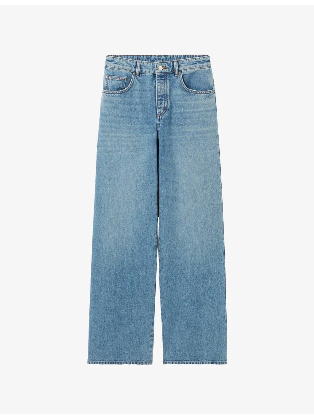 PRODUCT DETAILS - Claudie Pierlot denim jeans - 100% cotton - Button and zip-fly fastening - Regular fit, mid-rise, wide leg, belt loops, side pockets, back pockets, faded wash - Machine wash mild - True to size - Model is 5ft 10in/1.78m and wears a size UK 8 - Midweight, non-stretch Ref: R04496003