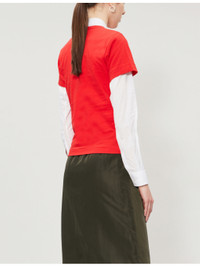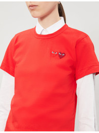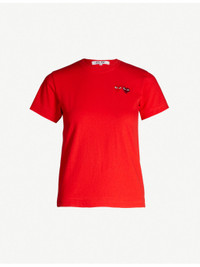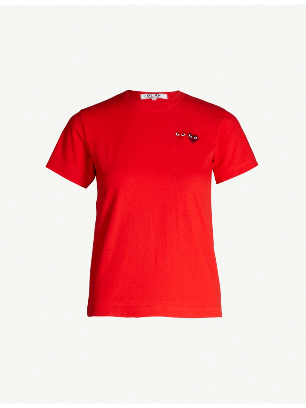 PRODUCT DETAILS - Comme des Garcons PLAY cotton-jersey T-shirt - 100% cotton - Slips on - Round neck, short sleeves, branded patch at chest, regular fit - Machine wash cold - Made in Japan - True to size - Size small: Length 20in / 51cm - Model is 5ft 11in/1.80m and wears a size small - Lightweight, slight stretch Ref: 143-2000022-P1T225