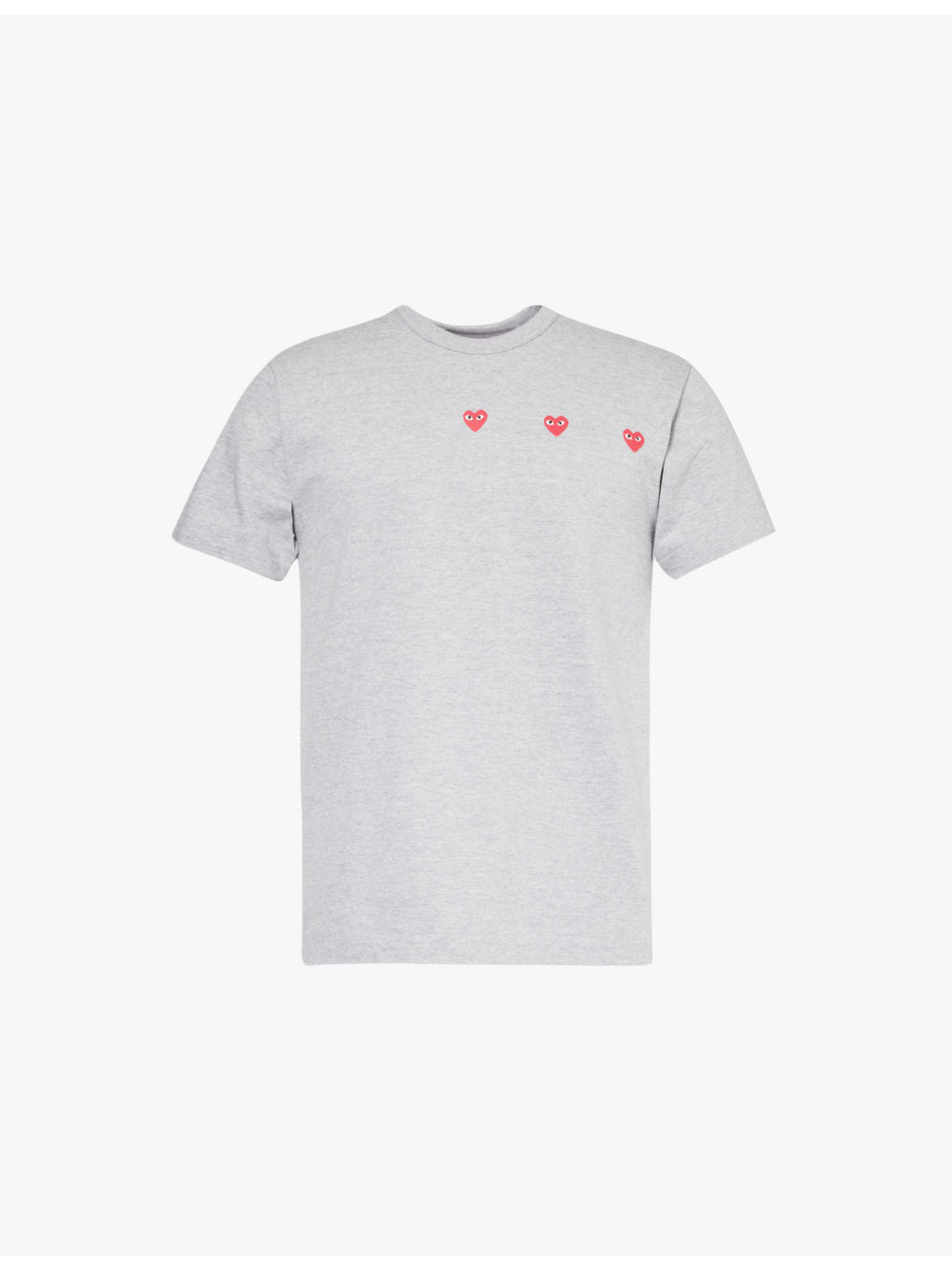 PRODUCT DETAILS - Comme des Garcons PLAY cotton-jersey T-shirt - 100% cotton - Pulls on - Regular fit, ribbed crew neck, short sleeves, hearts print at front - Hand wash cold - Made in Japan - Model is 6ft 2in/1.88m and wears a size medium - Lightweight, stretchy Ref: R04342280-S