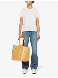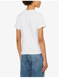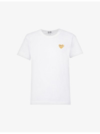 PRODUCT DETAILS - Comme des Garcons PLAY cotton-jersey T-shirt - 100% cotton - Slips on - Regular fit, round neck, ribbed trim at neck, short sleeves, metallic brand applique at chest - Machine wash cold - Made in Japan - True to size - Size small: length 22in / 56cm - Model is 5ft 10in/1.78m and wears a size small - Lightweight, slight stretch Ref: 236-2000022-P1T215-S