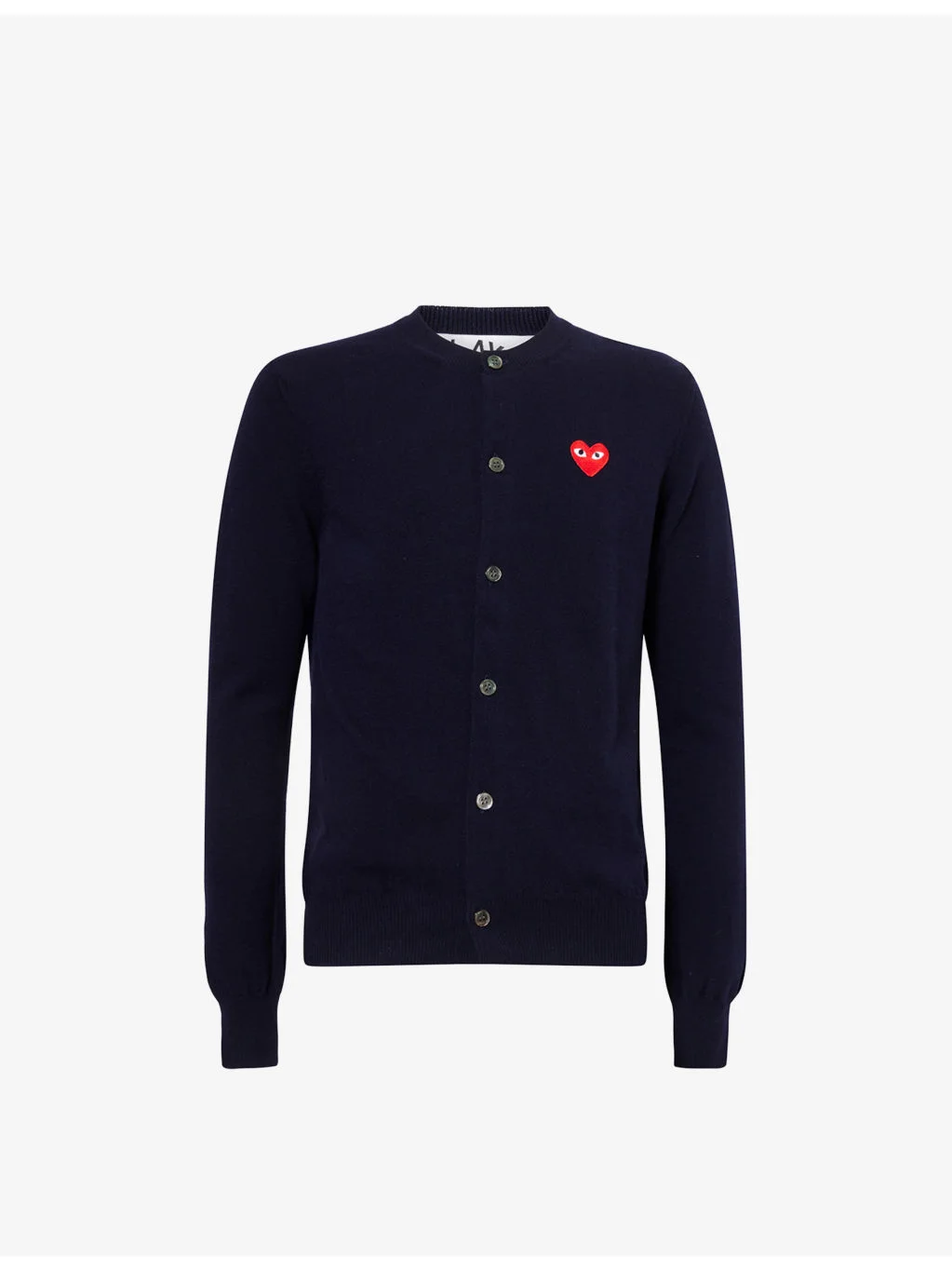 PRODUCT DETAILS - Comme des Garcons PLAY wool cardigan - 100% cotton - Button fastening - Regular fit, crewneck, long sleeves, heart embroidery at chest, ribbed trims - Dry clean - Model is 6ft 2in/1.88m and wears a size medium - Lightweight, stretchy Ref: R04563591