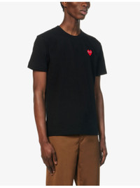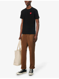 PRODUCT DETAILS - Comme des Garcons PLAY cotton-jersey T-shirt - 100% cotton - Pulls on - Regular fit, crewneck, ribbed trim at neck, short sleeves, brand applique at chest - Hand wash cold - Made in Japan - Model is 6ft 2in/1.88m and wears a size medium - Lightweight, slight stretch Ref: 343-2000022-P1T1081