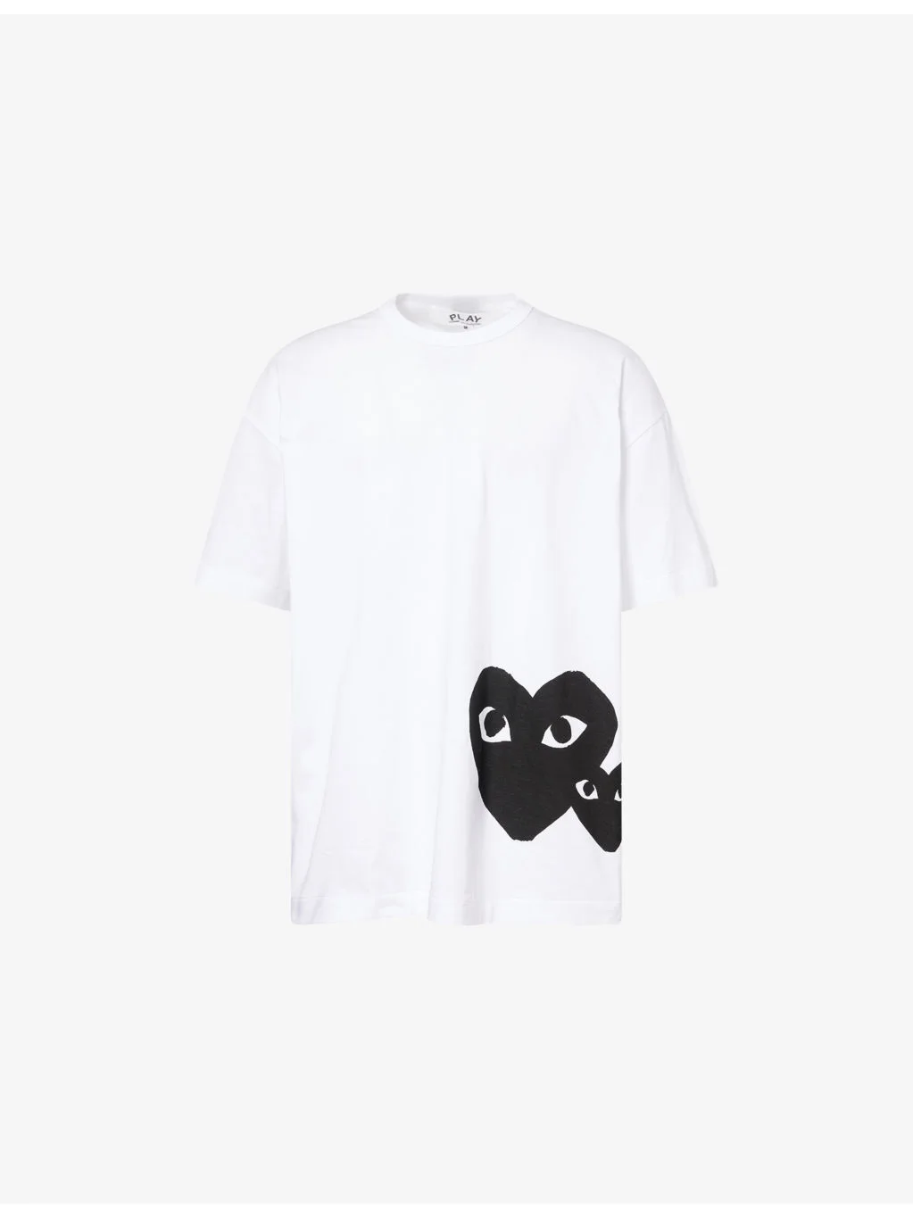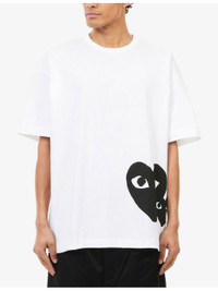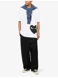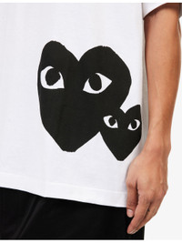 PRODUCT DETAILS - Comme des Garcons PLAY cotton-jersey T-shirt - 100% cotton - Oversized, ribbed crewneck, short sleeves, heart print at front - Hand wash - Made in Japan - Model is 6ft 2in/1.88m and wears a size medium - Lightweight, stretchy Ref: R04553115
