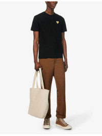 PRODUCT DETAILS - Comme des Garcons PLAY cotton-jersey T-shirt - 100% cotton - Pulls on - Regular fit, crewneck, ribbed trim at neck, short sleeves, branded applique at chest - Hand wash cold - Made in Japan - Model is 6ft 2in/1.88m and wears a size medium - Lightweight, slight stretch Ref: 343-2000022-P1T2161