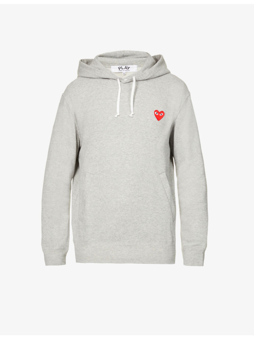PRODUCT DETAILS - Comme des Garcons PLAY cotton-jersey hoody - 100% cotton - Pulls on - Relaxed fit, drawstring at hood, long sleeves, ribbed elasticated at cuffs, graphic patch at chest, kangaroo pocket at front, tonal stitching, ribbed elasticated at hem - Machine wash cold - Made in Japan - Model is 6ft 2in/1.88m and wears a size medium - Lightweight, stretchy Ref: R03898751