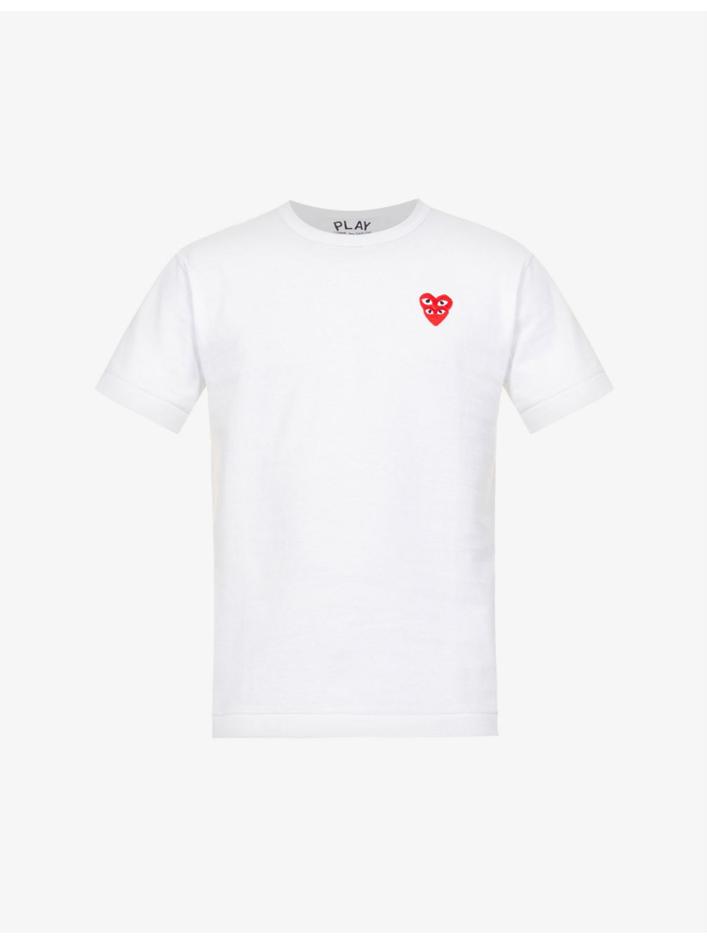 PRODUCT DETAILS - Comme des Garcons PLAY cotton-jersey T-shirt - 100% cotton - Pulls on - Crewneck, dropped shoulders, short sleeves, signature patch at chest, regular fit - Machine wash cold - Made in Japan - Model is 6ft 2in/1.88m and wears a size medium - Lightweight, slight stretch Ref: R03717050