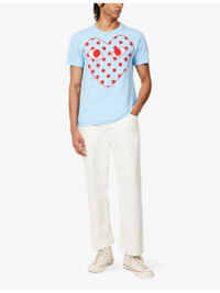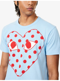 PRODUCT DETAILS - Comme des Garcons cotton T-shirt - 100% cotton - Pulls on - Crew neck, short sleeves, graphic PLAY print at front, straight hem - Machine wash mild - Made in Japan - Model is 6ft 2in/1.88m and wears a size medium - Lightweight, slight stretch Ref: R04507731
