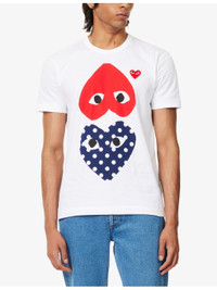 PRODUCT DETAILS - Comme des Garcons cotton T-shirt - 100% cotton - Pulls on - Crew neck, short sleeves, graphic PLAY print at front, straight hem - Machine wash mild - Model is 6ft 2in/1.88m and wears a size medium - Lightweight, slight stretch Ref: R04507729