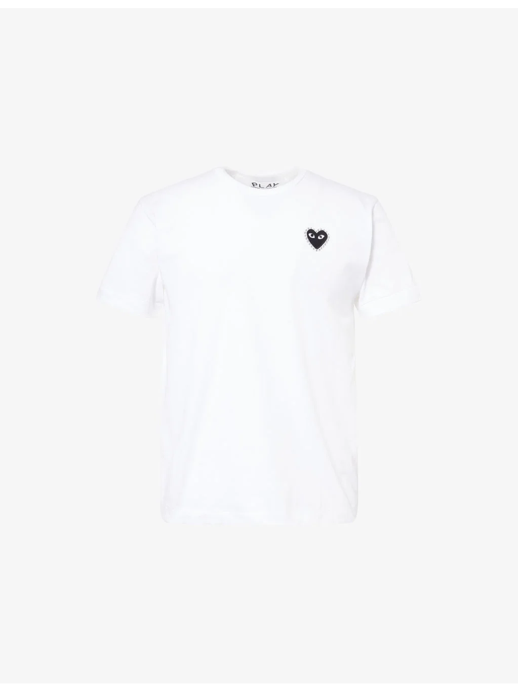 PRODUCT DETAILS - Comme des Garcons PLAY cotton T-shirt - 100% cotton - Pulls on - Regular fit, crewneck, short sleeves, rhinestone heart embroidery at chest, straight hem - Machine wash mild - Model is 6ft 2in/1.88m and wears a size medium - Midweight, slight stretch Ref: R04563603