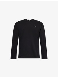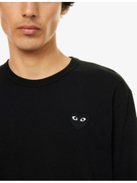 PRODUCT DETAILS - Comme des Garcons PLAY cotton T-shirt - 100% cotton - Pulls on - Regular fit, crewneck, ribbed trim at neck, short sleeves, brand print at front - Machine wash mild - Model is 6ft 2in/1.88m and wears a size medium - Lightweight, non-stretch - Made in Japan Ref: R04470568