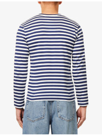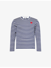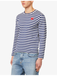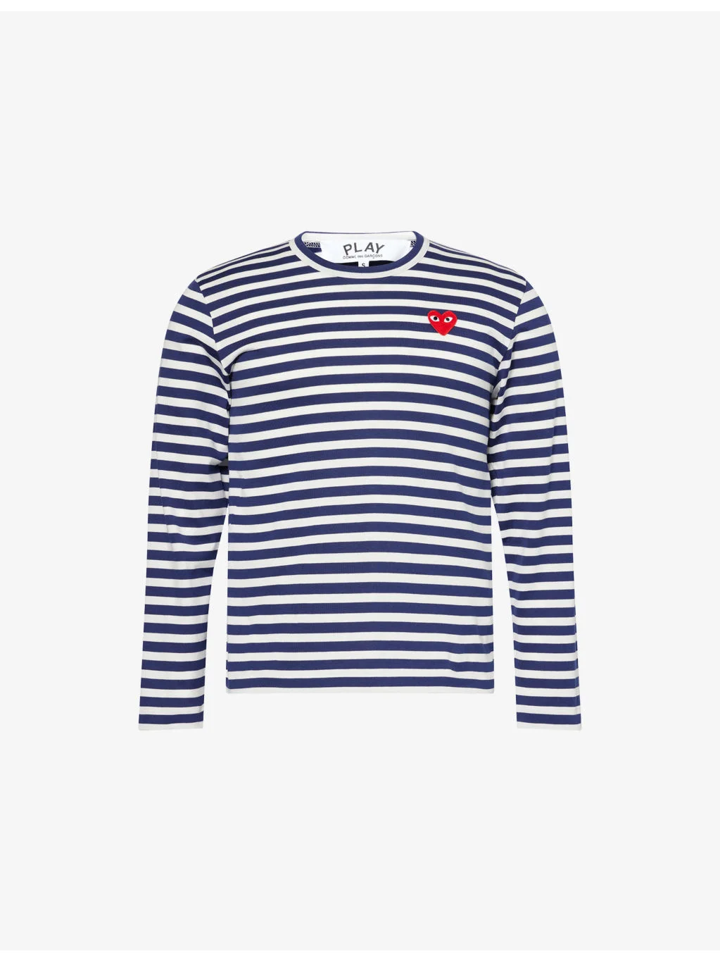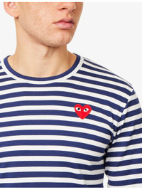 PRODUCT DETAILS - Comme des Garcons PLAY cotton T-shirt - 100% cotton - Pulls on - Round neck, long sleeves, striped, heart motif at front - Machine wash mild - Model is 6ft 2in/1.88m and wears a size medium - Lightweight, slight stretch Ref: R04553101
