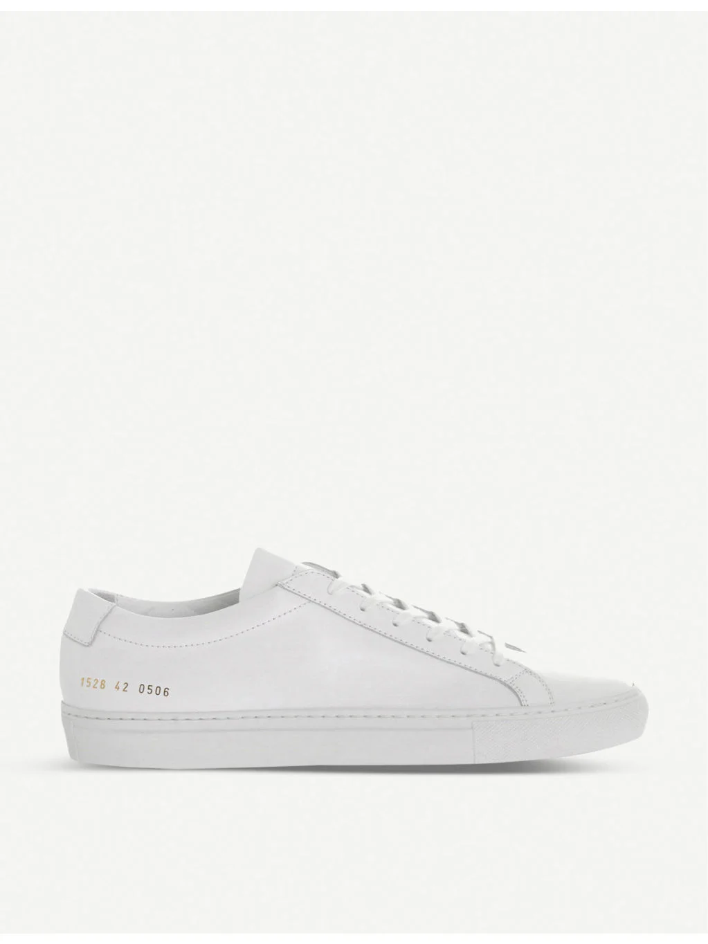 PRODUCT DETAILS Common Projects leather trainers Lace up Round toe, low top, golden serial number stamp at heels, rubber soles Leather upper, leather lining, rubber sole Made in Italy