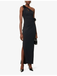 PRODUCT DETAILS - Coperni stretch-jersey gown - 78% polyamide, 22% elastane - Slim fit, asymmetric neckline, one-shoulder design, signature petal knots at shoulder and waist, side slit, jersey texture, floor-length hem - Machine wash at 40°C - Made in France - True to size - Size small: length 54in / 137cm - Model is 5ft 10in/1.78m and wears a size small - Lightweight, stretchy Ref: R04495078