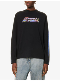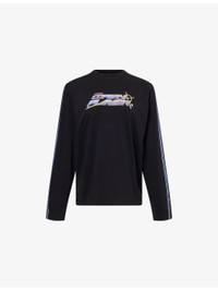 PRODUCT DETAILS - Coperni cotton-jersey T-shirt - 100% cotton - Relaxed fit, round neck, ribbed trim at neck, long sleeves, slogan print at front, stripe print at sleeves, jersey texture - Machine wash at 30°C - Made in Portugal - True to size - Model is 5ft 10in/1.78m and wears a size small - Lightweight, slight stretch Ref: R04495089