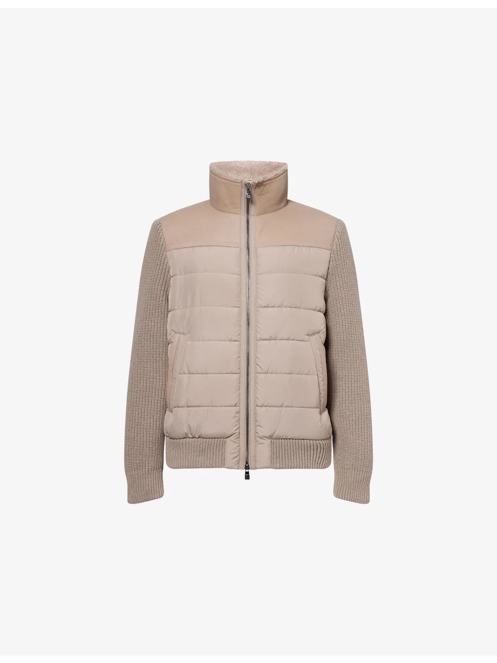 Knitted-Sleeve Padded Leather And Woven Jacket