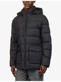 PRODUCT DETAILS - Corneliani cashmere blend jacket - 50% cashmere, 50% polyamide; lining 100% polyester - Exposed zip fastening at front - Detachable/adjustable hood, long sleeves, adjustable/elasticated cuff, two flap path pockets at front, all-over padding, double vent at back, straight hem - Dry clean - Made in Turkey - Size UK 40: length 31.4in / 80cm, chest 44.4in / 113cm - Model is 6ft 2in/1.88m and wears a size UK 40 - Midweight, non-stretch Ref: R04537932