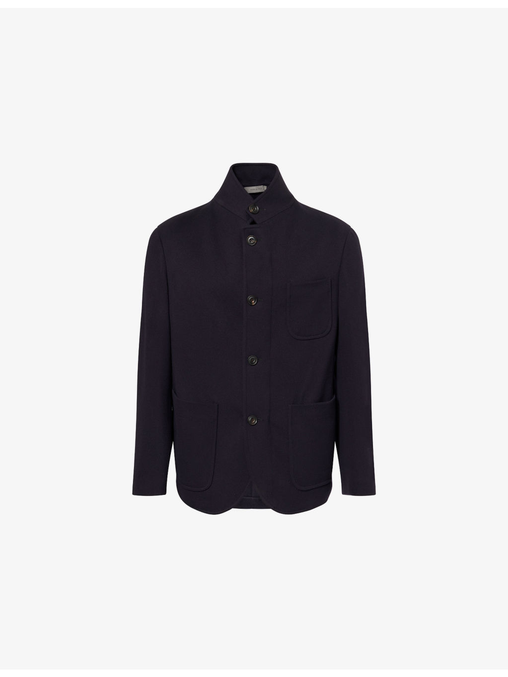 PRODUCT DETAILS - Corneliani wool jacket - 100% wool; lining 100% polyamide - Exposed button fastening with a concealed zip fastening at front - Stand collar, long sleeves, three patch pockets at front, one interior slip pocket - Dry clean - Made in Italy - Size UK 40: length 33in / 84cm, chest 37.7in / 96cm - Model is 6ft 2in/1.88m and wears a size UK 40 - Midweight, non-stretch Ref: R04482939