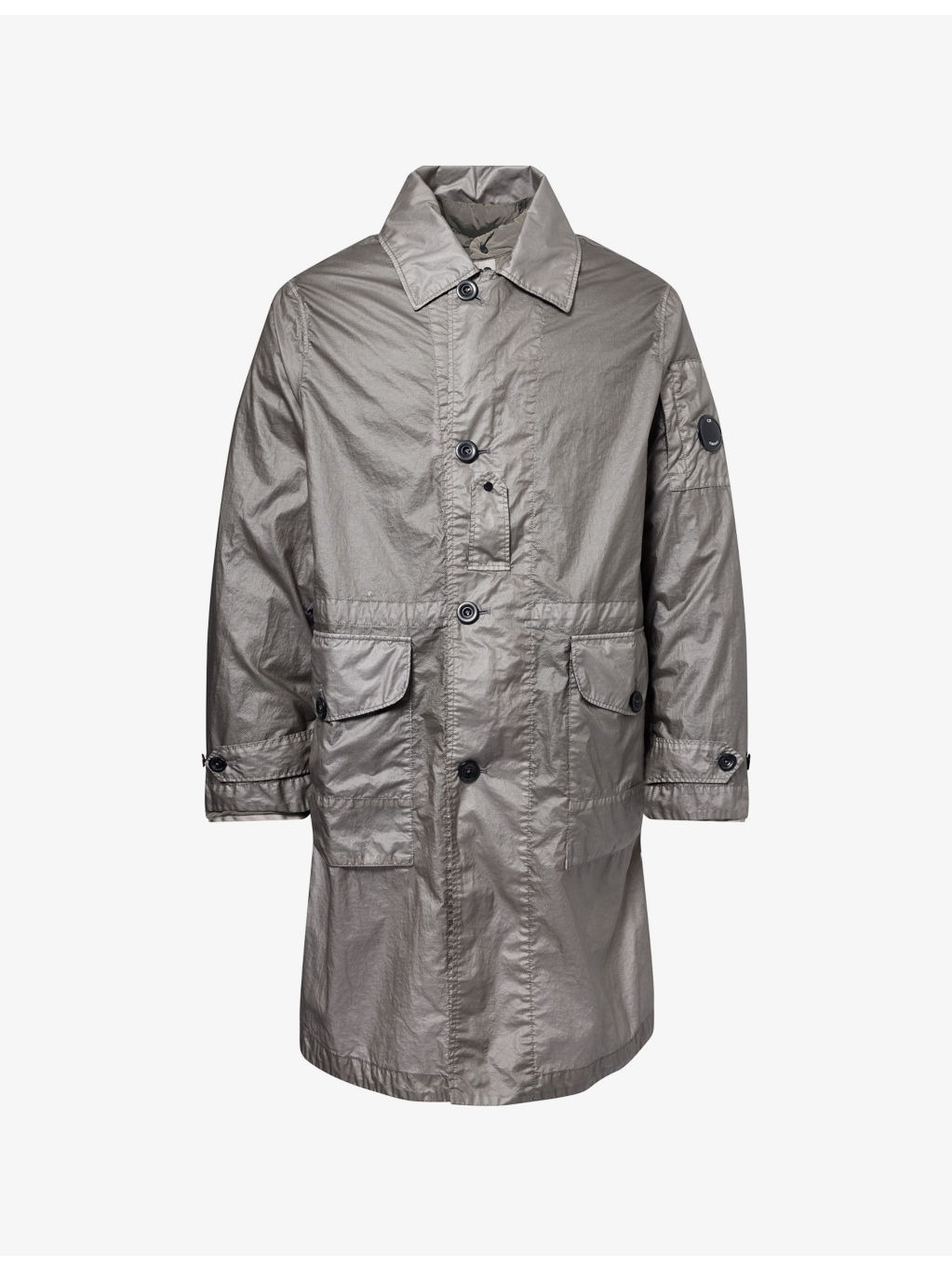 PRODUCT DETAILS - C.P. Company nylon overcoat - 100% nylon - Exposed button fastening and concealed zip fastening at front - Wide collar, long sleeves, adjustable cuffs, drawstring waist, two buttoned flap pockets at front, one zipped pocket at sleeve with branded-lens patch, detachable, padded inner jacket, all-over crinkle texture - Machine wash at 30°C - Made in Bulgaria - Size medium: length 42.1in / 107cm, chest 47.2in / 120cm - Model is 6ft 2in/1.88m and wears a size medium - Midweight, non-stretch Ref: R04486712
