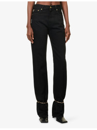 PRODUCT DETAILS - DARKPARK denim jeans - 100% cotton; lining 65% polyester, 35% cotton - Exposed button and concealed zip-fly fastening at front - Regular fit, high-rise, straight leg, structured waistband with belt loops, five pockets, gold-toned hardware, brand patch at back, gold-toned cuffs at legs, frayed trims - Machine wash at 30°C - Made in Italy - True to size - Size UK 8: rise 12in / 30.5cm, inside leg 36in / 91.5cm, leg opening 16in / 40.5cm - Model is 5ft 10in/1.78m and wears a size UK 8 - Midweight, non-stretch Ref: R04552761