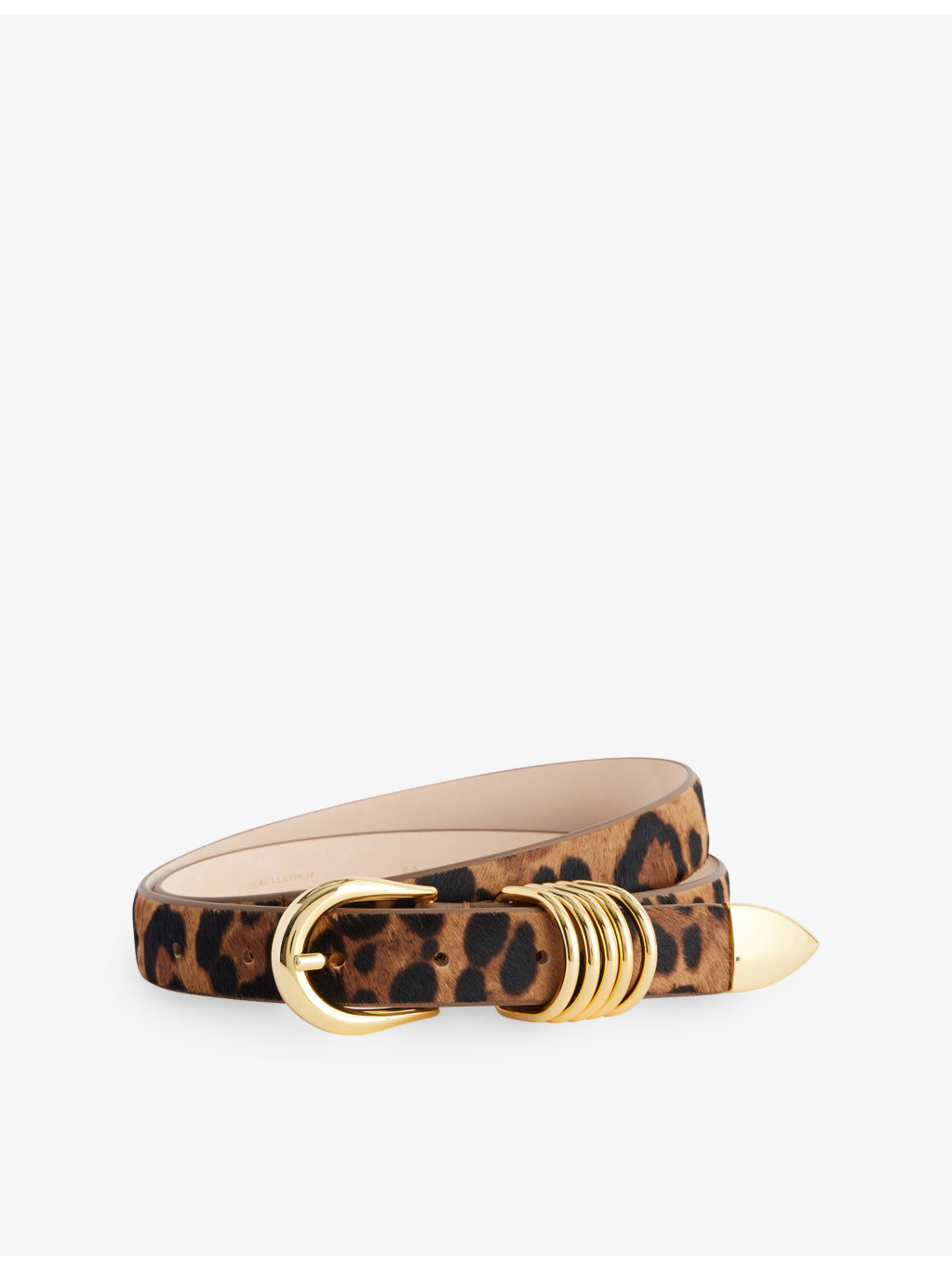 PRODUCT DETAILS - Dehanche pony-hair leather belt - 100% leather - Adjustable buckle fastening - Rounded rectangular buckle, five ring hardware, 10-hole adjustable length, gold-toned hardware, all-over leopard print - Specialist leather clean - Width: 2.5cm - Made in Italy Ref: R04501801