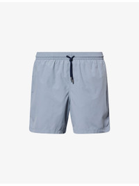 PRODUCT DETAILS - Derek Rose swim shorts - 100% polyamide; lining 100% polyester - Regular fit, mid-rise, drawstring elasticated waistband, slip pockets at front, embroidered tab at pocket, zip pocket at back, loop at back, internal mesh briefs, branded hardware - Machine wash cold - Model is 6ft 2in/1.88m and wears a size medium - Lightweight, non-stretch - Comes with drawstring dust bag Ref: R04551826