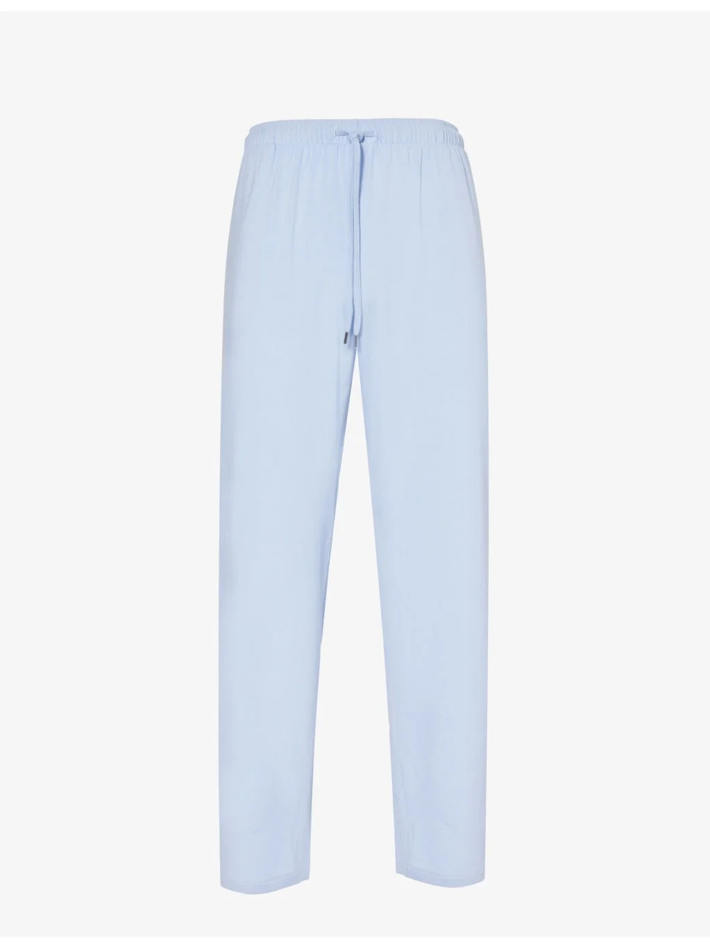 PRODUCT DETAILS - Derek Rose stretch-woven pyjama bottoms - 95% modal, 5% elastane - Pulls on - Relaxed fit, high-rise, tapered leg, drawstring elasticated waistband, two slip pockets and brand tab at front, patch pocket at back, straight cuffs - Machine wash cold - Model is 6ft 2in/1.88m and wears a size medium - Lightweight, stretchy Ref: R04316644