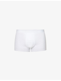 PRODUCT DETAILS - Derek Rose stretch-cotton trunks - 92% cotton, 8% elastane - Pulls on - Mid rise, elasticated branded waistband, supportive panel at centre - Machine wash cold - Model is 6ft 1in/1.85m and wears a size medium - Lightweight, stretchy Ref: R03805087