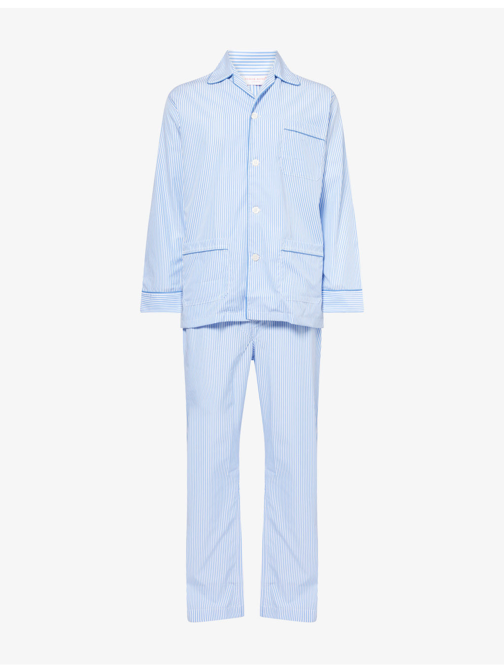 PRODUCT DETAILS - Derek Rose cotton pyjamas - 100% cotton - Button fastening - Exposed button fastenings at front - Top: - Camp collar, long sleeves, one patch pocket at chest, striped - Bottoms: - Relaxed fit, mid rise, straight leg, elasticated drawstring waistband, slip pockets, striped - Machine wash mild - Model is 6ft 2in/1.88m and wears a size medium - Lightweight, slight stretch Ref: R04513404