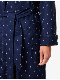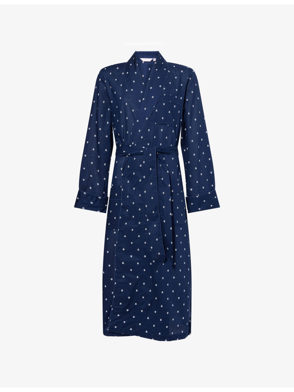 PRODUCT DETAILS - Derek Rose cotton-poplin robe - 100% cotton - Self-tie fastening - Regular fit, shawl neck, long sleeves, patch pocket at chest, two patch pockets at front, self-tie belt, all-over graphic pattern - Machine wash cold - True to size - Model is 6ft 2in/1.88m and wears a size medium - Lightweight, non-stretch Ref: R04463473