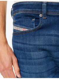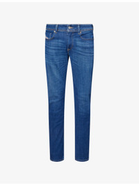 PRODUCT DETAILS - Diesel denim jeans - 95% cotton, 3% elastomultiester, 2% elastane - Exposed button and concealed zip-fly fastening at front - Skinny-fit, low-rise, tapered-leg, classic five pockets, belt loops, brand patch at back, whiskering detailing, faded wash - Machine wash at 30°C - Made in Tunisia - Size UK 32: rise 10.2in / 26cm, leg length 32.2in / 82cm, leg opening 12.5in / 32cm - Model is 6ft 2in/1.88m and wears a size UK 32 - Midweight, slight stretch Ref: R04477071