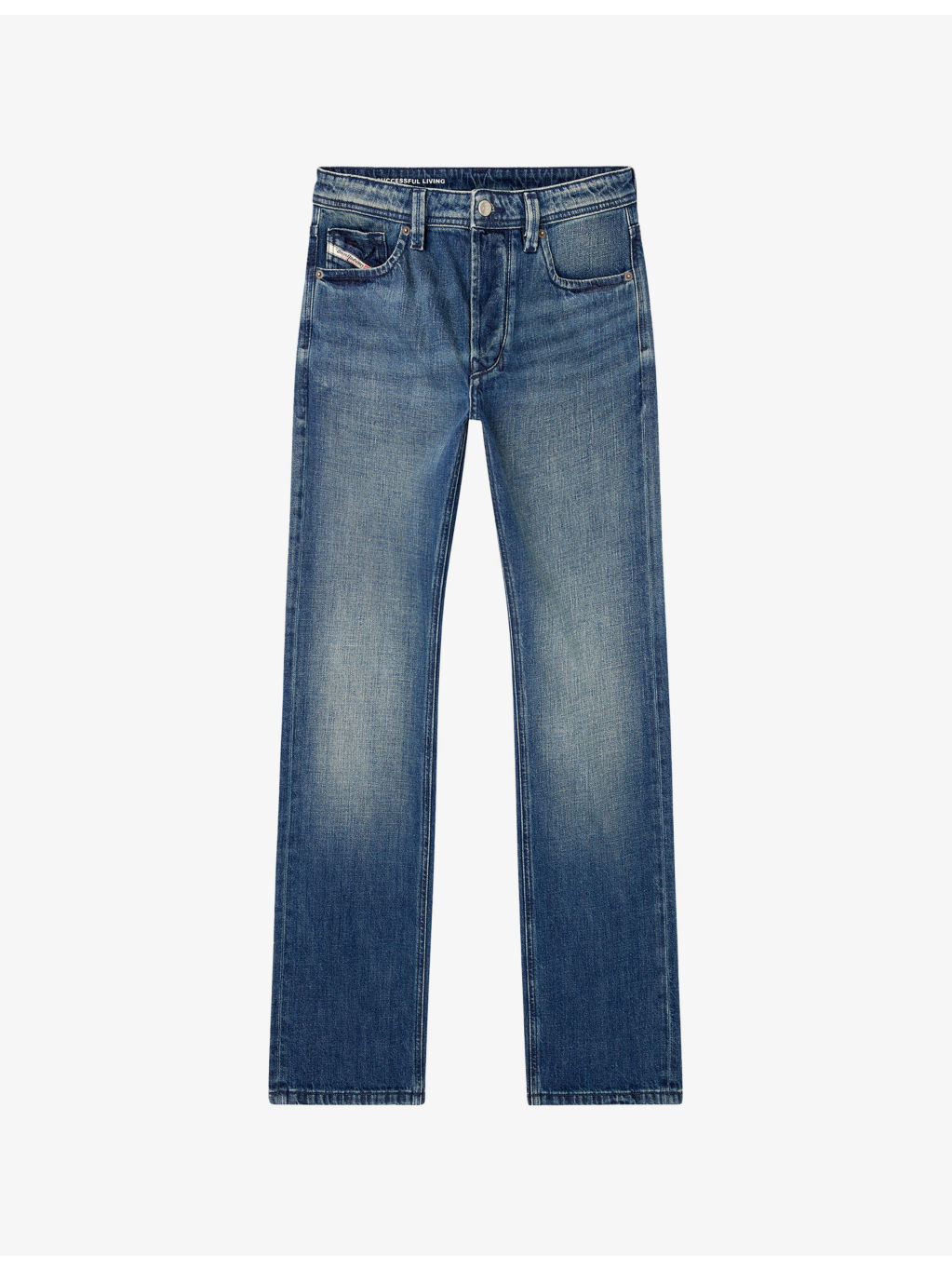 PRODUCT DETAILS - Diesel denim jeans - 100% cotton - Button and zip-fly fastening - Regular fit, mid-rise, straight leg, belt loops, side pockets, back pockets, faded wash - Machine wash at 30°C - True to size - Model is 5ft 10in/1.78m and wears a size 32 - Midweight, non-stretch Ref: R04479408