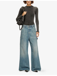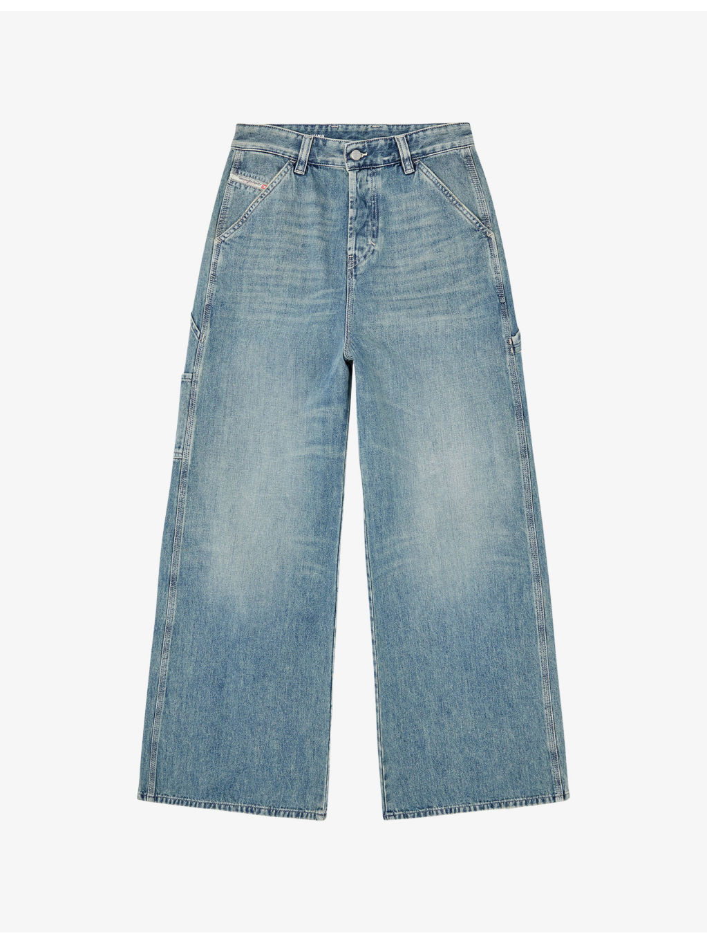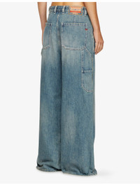PRODUCT DETAILS - Diesel denim jeans - 100% cotton - Button and button-fly fastening at front - Relaxed fit, low rise, low crotch, wide leg, structured waistband, belt loops, classic five pockets, brand patch at back, contrast topstitch, faded wash, whiskering and distressed detailing - Machine wash at 30°C - True to size - Midweight, non-stretch Ref: R04479154