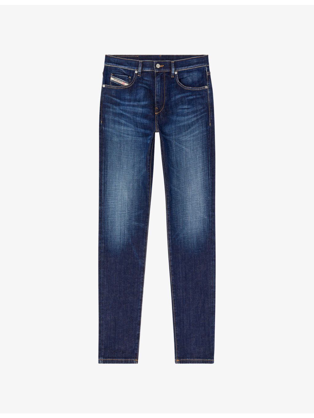 PRODUCT DETAILS - Diesel denim jeans - 99% cotton, 1% elastane - Button and zip-fly fastening - Slim fit, mid-rise, slim leg, structured waistband with belt loops, five pockets, brand patch at back, mid-faded wash, contrast stitching, branded hardware - Machine wash cold - Made in Tunisia - Model is 6ft/1.83m and wears a size UK 32 - Midweight, slight stretch Ref: R04410684